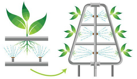 In this method, the roots of the plants are suspended in the air and regularly misted with a nutrient solution. Due to the high oxygen supply, plant growth is rapid and this system is applicable to a wide range of crops, especially in the propagation stage.