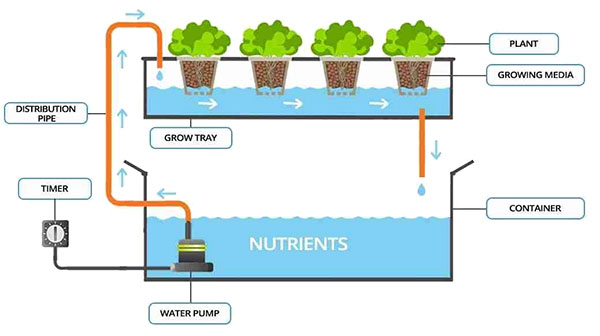 In this method, the culture trays are periodically filled (submerged) and then emptied (drained) with nutrient solution. This regular cycle allows for better oxygenation of the roots and efficient nutrient uptake.