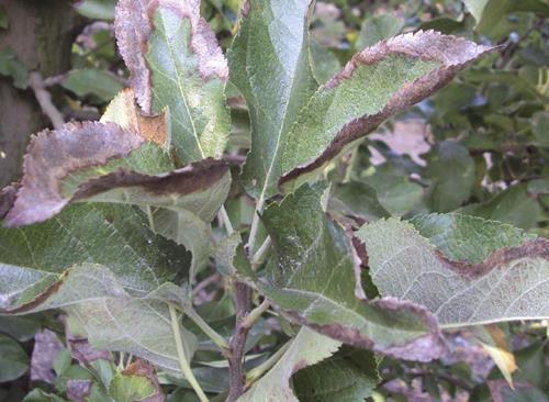 Potassium deficiency in apple trees usually manifests with symptoms that first appear on older leaves due to the movement of potassium through the plant. The edges of these older leaves often turn yellow, progressing to browning, scorching, and curling, and sometimes the leaves curl inward, forming a boat shape. The margins may initially be bright green and then become necrotic, and this necrosis can extend down to the midrib of the leaf. Leaves may also show interveinal chlorosis (yellowing between the veins), and purple or reddish spots may appear on the undersides of the leaves. Apple trees with potassium deficiency often show slow growth of new shoots and weak branches, with poor overall growth and reduced fruit quality – the fruit may be slightly acidic or woody. This deficiency also weakens the tree’s resistance to drought, cold, and pests, and can make the tree more susceptible to cold damage and disease. Potassium is critical for thickening new branches, strengthening the trunk, improving drought and cold tolerance, and increasing fruit yield and quality. In apples, a leaf potassium level of less than approximately 0.8% to 1.0% indicates a deficiency. Potassium deficiency is more likely in sandy or low-clay soils, where excessive lime is applied, or when environmental conditions such as insufficient sunlight or excessively wet soils prevail.