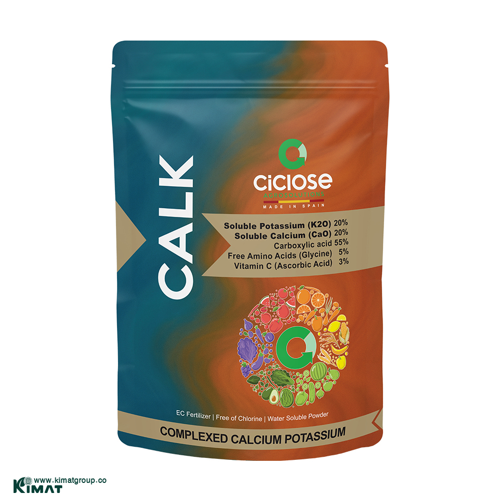 کود کالک ترکیبی ویژه با دارا بودن پتاسیم محلول برای بهبود کیفیت میوه و افزایش مقاومت به تنشها، کلسیم محلول برای استحکام دیواره سلولی و کاهش ریزش میوه و مواد آلی همراه با کربن آلی جهت بهبود فعالیت میکروبی و حاصلخیزی خاک طراحی شده است. وجود اسیدهای کربوکسیلیک باعث افزایش قابلیت جذب عناصر و بهبود انتقال آنها در گیاه میشود، در حالی که اسیدهای آمینه (گلایسین) در تغذیه و رشد گیاه نقش دارند. همچنین اسید آسکوربیک بهعنوان آنتیاکسیدان قوی، مقاومت گیاه در برابر تنشهای محیطی را تقویت میکند و در مجموع برای بهبود رشد، کیفیت محصول و پایداری گیاه در شرایط سخت بسیار مؤثر است.